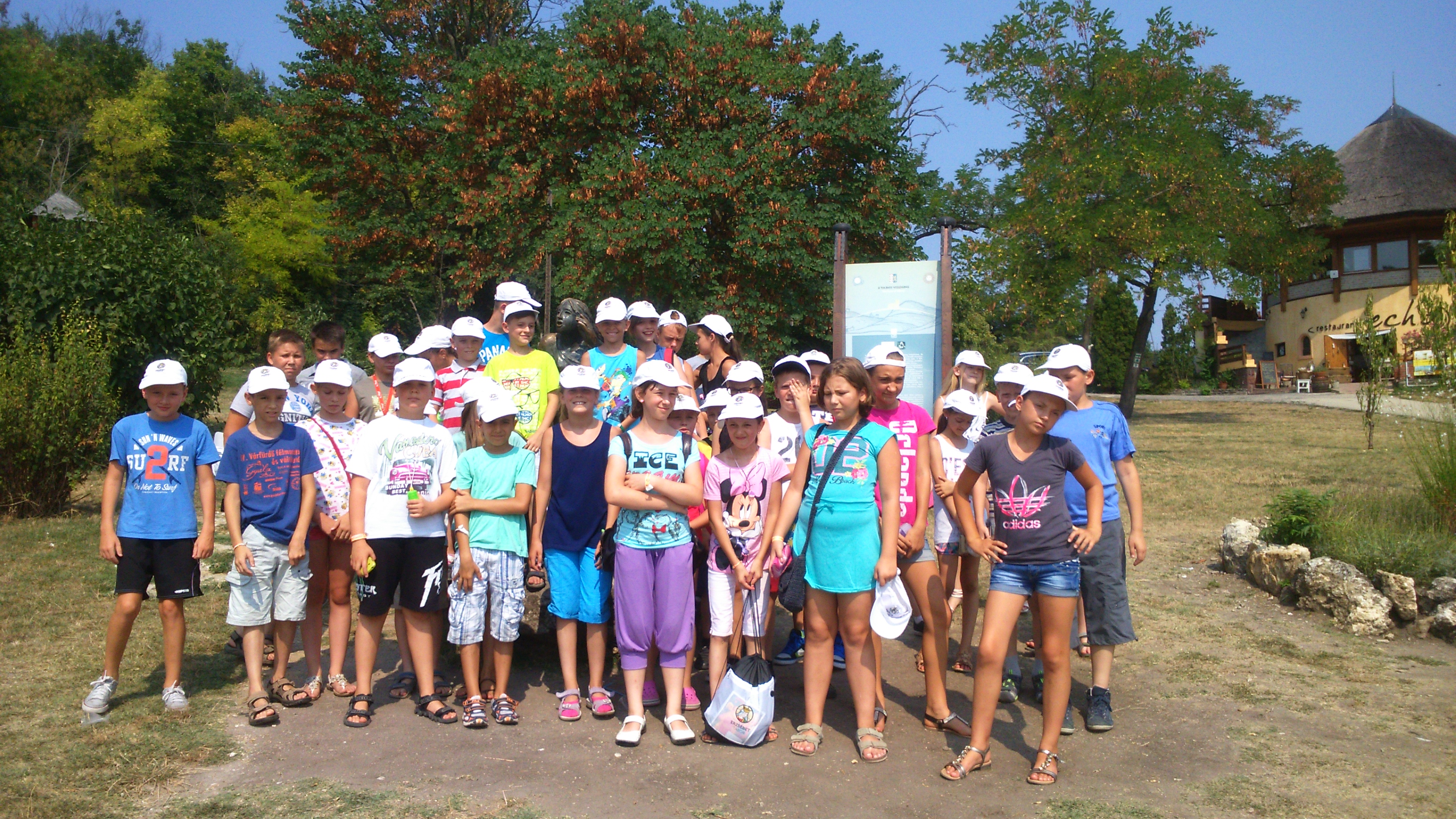 A hatalmas táborban (azon a héten 1800 gyerek volt jelen) nem kis feladat volt a Kék étterem megtalálása, de végül sikerült! Az igazi retro hangulatú étteremben fogyasztották el a táborozók a hetvenes-nyolcvanas évek ízeit idéző ételeket. Szerencsére minden étkezéshez járt valami édesség is. Akinek még ezután is némi táplálék-kiegészítésre volt szüksége, a helyi ABC kínálatából válogathatott. A hathatós segítségnek hála, mindenki jelentősebb testtömeg-vesztés nélkül vészelte át ezt a néhány napot. Sőt, volt olyan is, aki alig evett, mégis hízott! A sok színes programból nehéz volt válogatni. Délelőttönként lehetőség volt a tábor növényeit megismerni, akadálypályán ügyeskedni, rajzolni, verset mondani, táncolni, énekelni, vagy egyszerűen "csak" pihenni, hiszen a tábor hivatalos dala minden reggel 6:40-kor ébresztett mindenkit. Ebéd után a fürdésé volt a főszerep. Bár a partig elég sokat kellett gyalogolni a sok hancúrozás megérte a viszontagságokat! Volt, aki vízipólózott, volt, aki Tibi bácsival labdázott, voltak önjelölt gyöngyhalászok, akik gyakran buktak le a víz alá. Sajnos csak tavi kagylót tudtak felhozni, pedig a lányok az igazgyöngynek jobban örültek volna! Esténként valahogy mindig messzebb volt a tábor! Lefekvés előtt, hogy senki se unatkozzon táncház, zenés színházi előadás, éjszakai túra és disco színesítette a programot. A záró bulin került sor a szobatisztasági verseny eredményhirdetésére. Ló Szerafin házában, ahol a gyulaiak laktak, a Rómeó fedőnevű fiúszoba lett a győztes. De a II. és III. helyezést is elhalászták a fiúk a lányok elől. Természetesen minden helyezést elért szobában düreres diákok laktak! Péntek reggel vidám búcsúzás következett Zánkától, majd Tihany felé indult a busz. A városnéző séta során a gyerekek kipróbálták a visszhangot (még működik !), megtekintették az apátságot és megkóstolták a helyi fagyit is. A buszra szállás után ajándékeső záporozott a gyerekekre. Volt ott hűtőmágnes, cukorka, jégkrém, egyebek. Este hét óra körül érkezett meg a fáradt csapat Gyulára, ahol az izgatott szülők már nagyon várták őket. Összességében elmondható, hogy a többség remekül érezte magát, bár a kisebbek közül egyeseknek nagyon hiányzott anya. A tábor szervezői: Dr. Gulyás ImrénéMolnár Katalin Kissné Márkus Mária Gulyás Csabáné voltak, akik ezúton is szeretnék megköszönni Szabó Tibor apuka és buszsofőr önzetlen és áldozatos munkáját! |